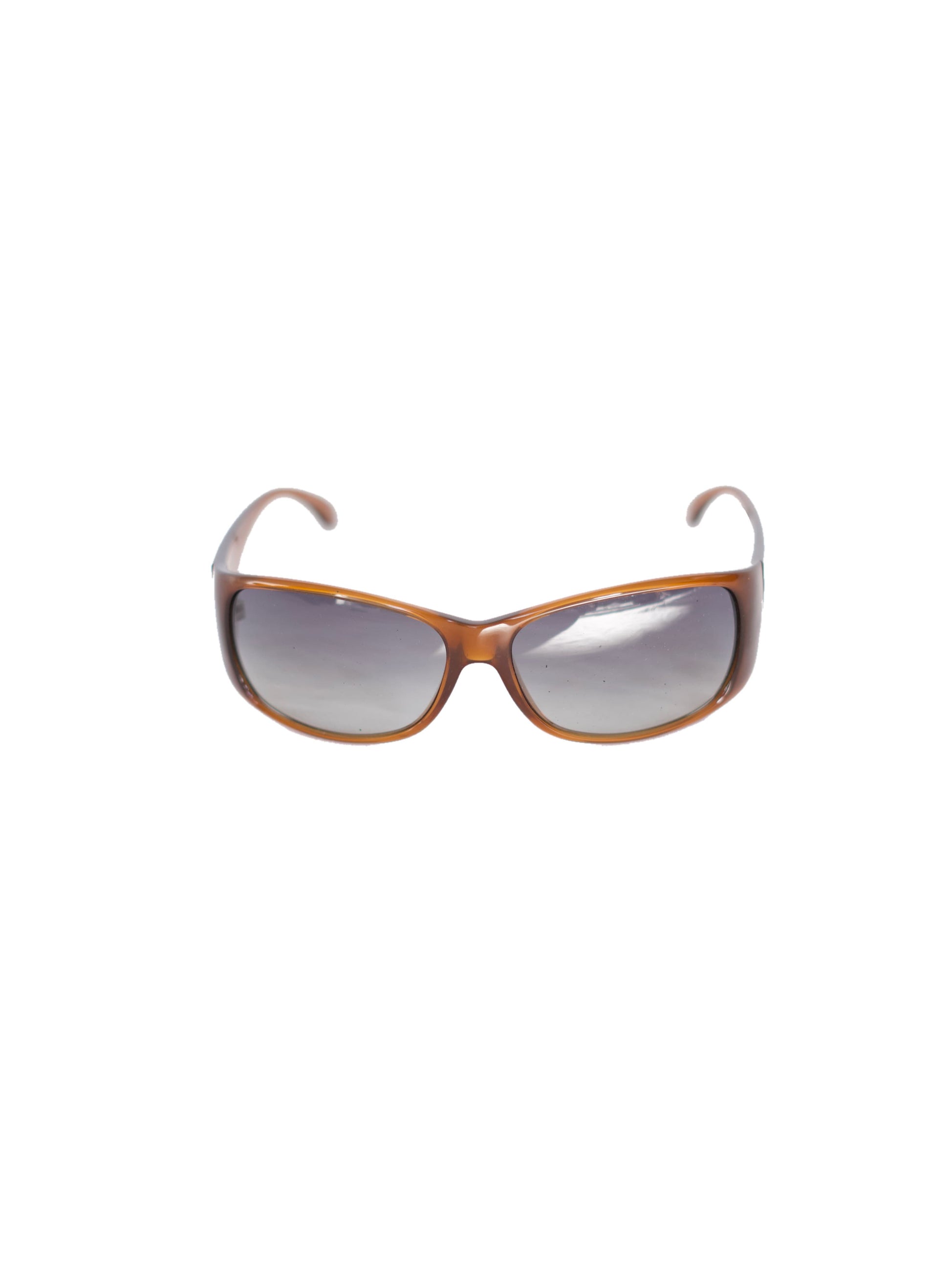 These Chanel sunglasses are a sleek statement piece that channels early 2000s glamour. Crafted in a warm amber tone, they feature an oversized wraparound silhouette with gradient brown lenses and the signature interlocking CC logo in silver at the temples. The sculpted frame offers a bold yet refined look, perfect for everyday wear or resort styling.